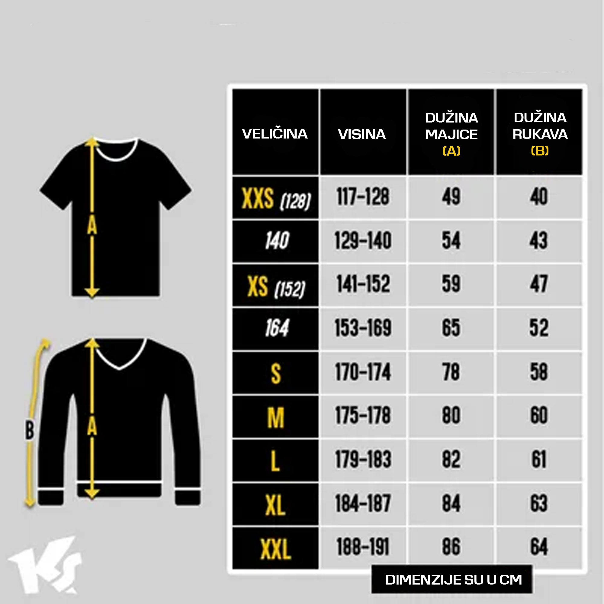 | Veličina | 116 | 128 | 140 | 152 | 164 | S | M | L | XL | XXL | XXXL |